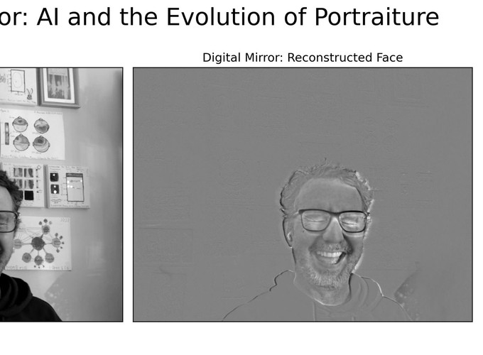 Cian’s paintings, called “Tronies”, layer multiple portraits of the same person to show just how varied and expressive human faces can be. I linked this to how computers “learn” to recognize faces: by starting with an average face and then spotting the unique details that make each of us different.